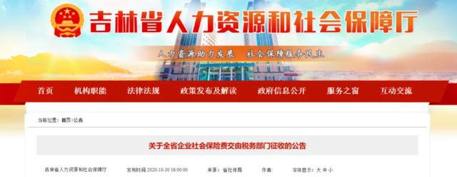 10月30日 北京、上海、山东、山西、湖南、四川、贵州、吉林、江西等地同时发布了《关于企业社会保险费交由税务部门征收的公告》的通知。